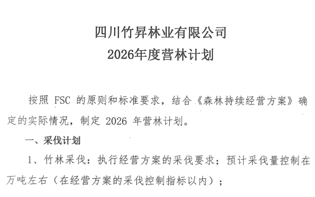 四川竹昇林业有限公司2026年度营林计划